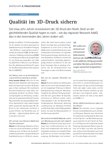 Die Idee von AddiQ, in fünf Verbundprojekten für die nächsten drei Jahre gemeinsam die Qualitätssicherung in der additiven Fertigung – dem 3D-Druck – voranzutreiben, wurde innerhalb der Initiative RUBIN des Bundesministeriums für Bildung und Forschung (BMBF) im mitteldeutschen Raum als einziges Projekt für eine Förderung ausgewählt und erhält bis 2026 Mittel in Höhe von neun Millionen Euro. Die „Mitteldeutsche Wirtschaft“ sprach mit dem Bündniskoordinator  Hans-Joachim Münch (SONOTEC).